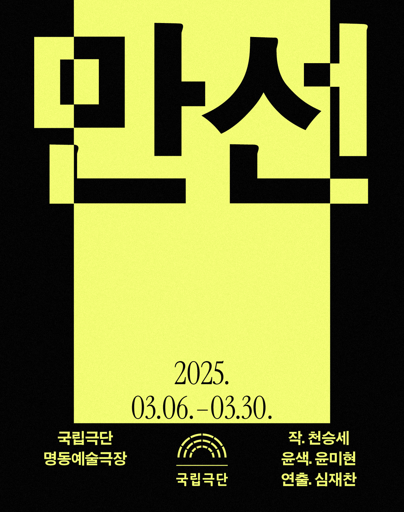 공지사항 전체 공지 부고 안내 홍보 채용정보 공연소식 1 / 2 에쿠우스(EQUUS) 공연일자2025-10-03~2026-02-01 공연시간110 공연장소예그린씨어터 문의전화070-4210-0822 출처 엘리펀트 송 공연일자2025-11-22~2026-03-08 공연시간90 공연장소예스24스테이지 3관 문의전화02-3672-0900 출처 문화예술계소식 전체 문화예술계소식 공연소식 기타 및 모집