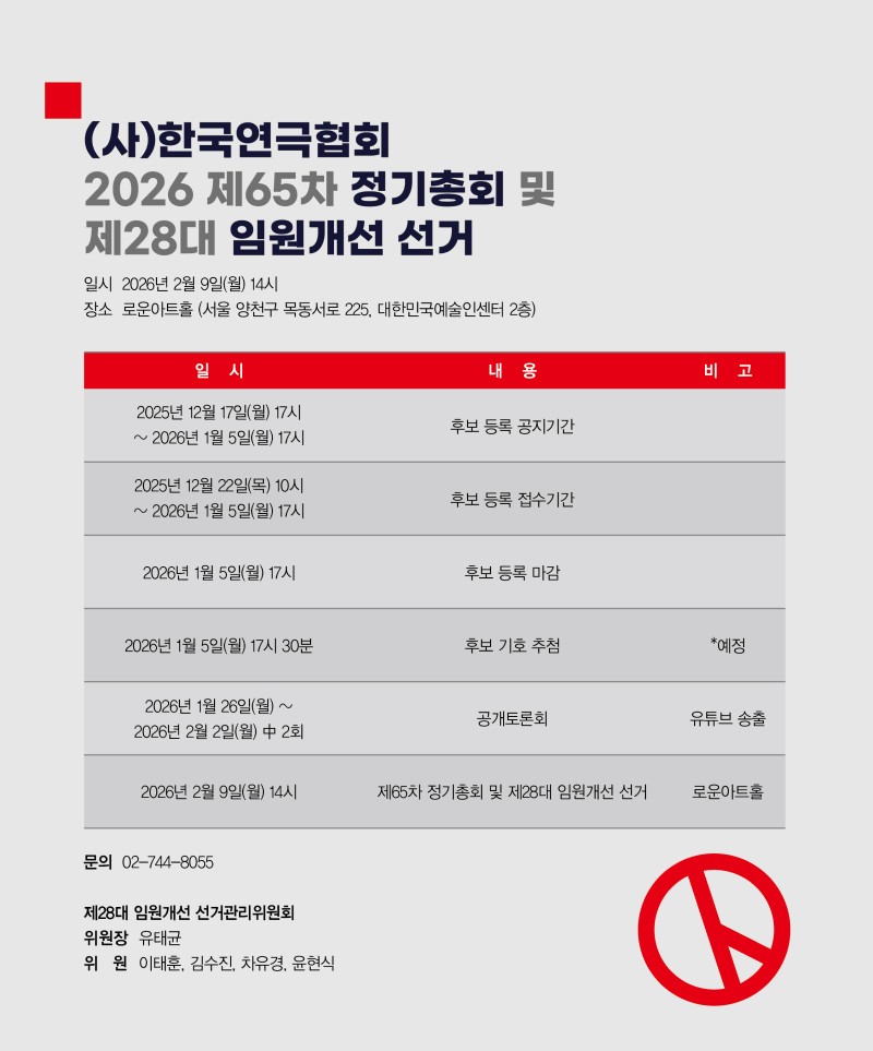 제목 [공지] (사)한국연극협회 2026 제65차 정기총회 및 제28대 임원개선 선거