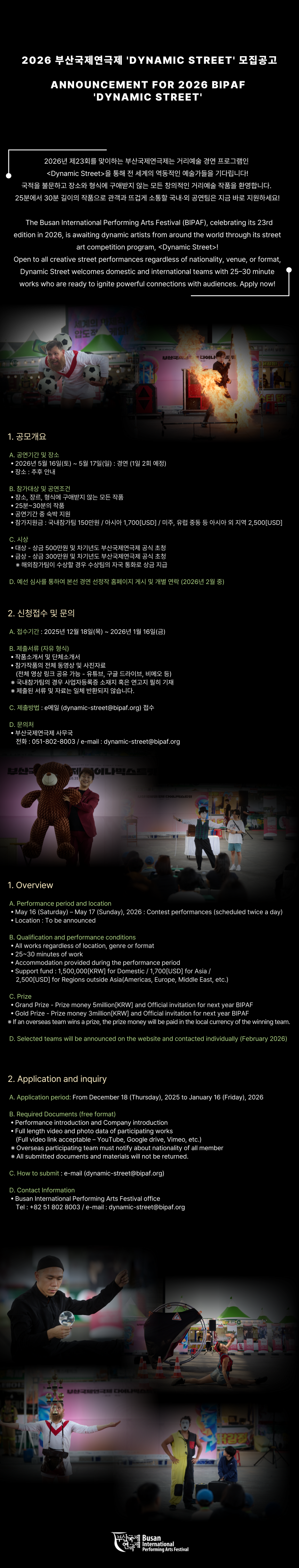 제목 2026년 제23회 부산국제연극제 \'Dynamic Street\' 공모 안내