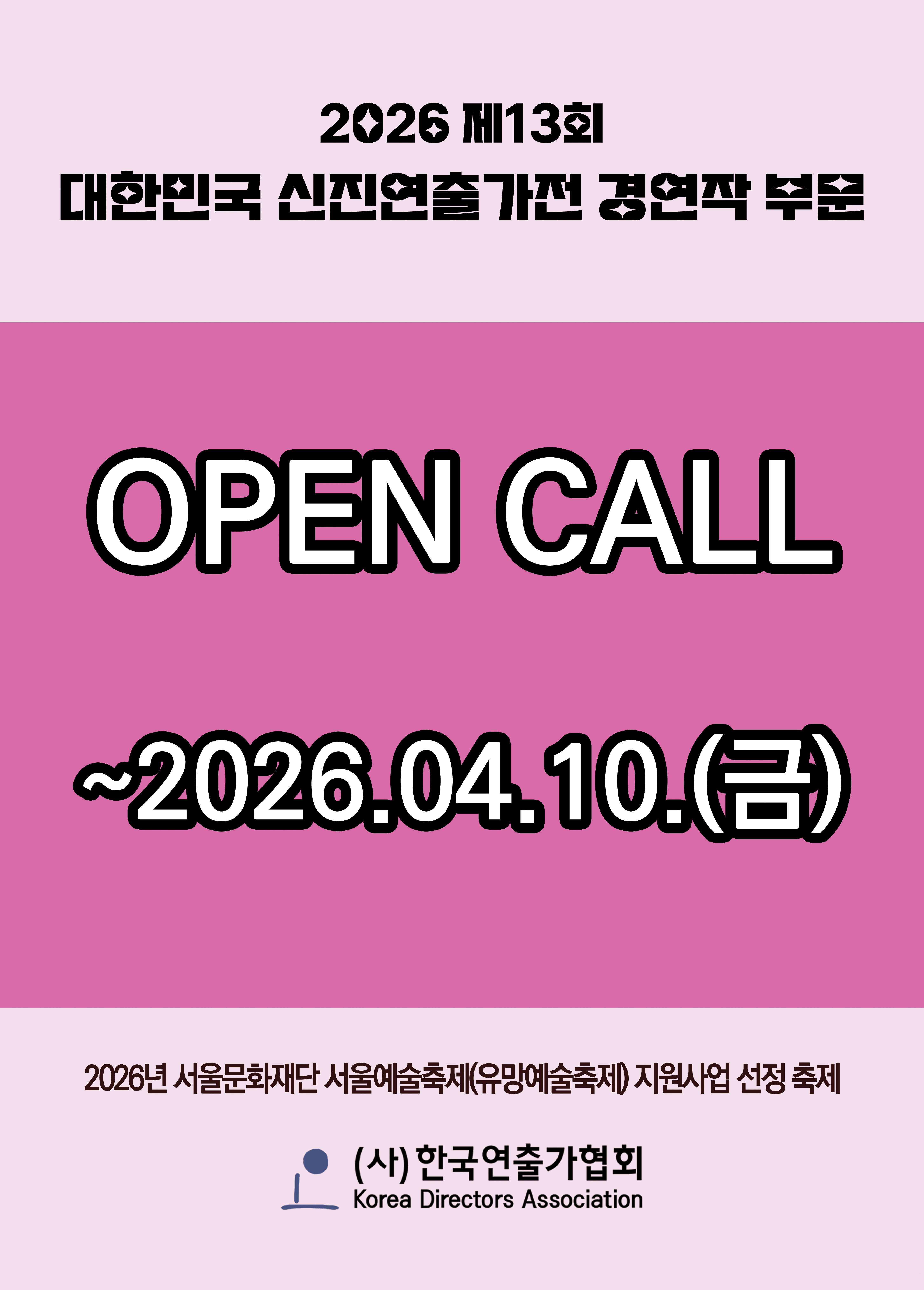 | 작성자 | (사)한국연출가협회 | 등록일 | 2026-03-23 | 조회수 | 6 |
